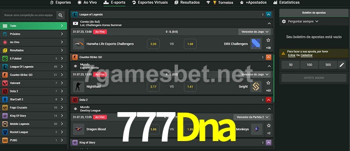 A aposta 777Dna oferece aos jogadores a experiência mais conveniente de apostas em eSports!